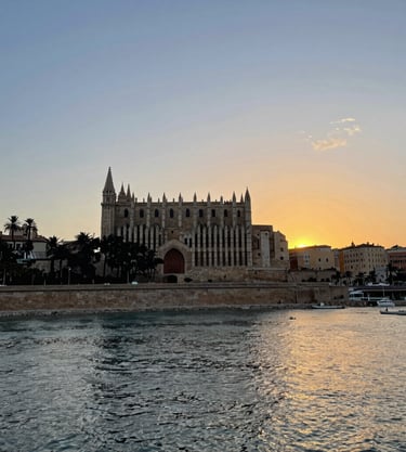 Concludi la giornata godendoti un tramonto indimenticabile davanti alla Cattedrale di Palma.